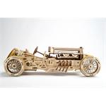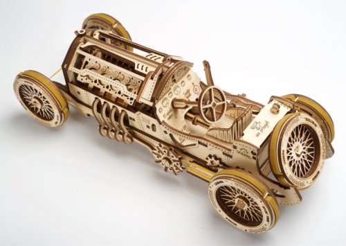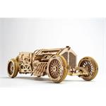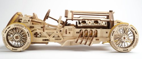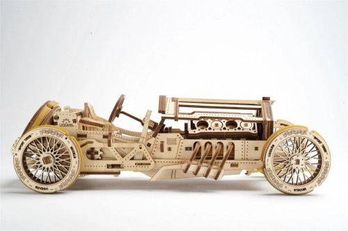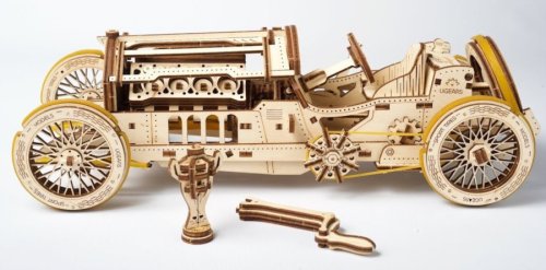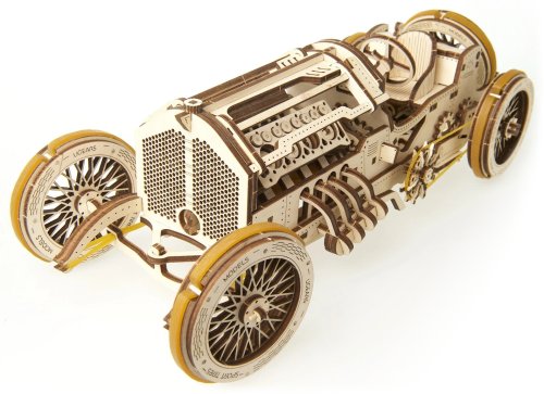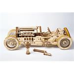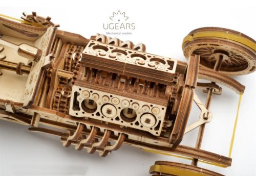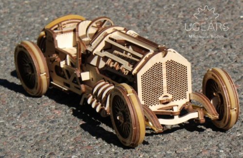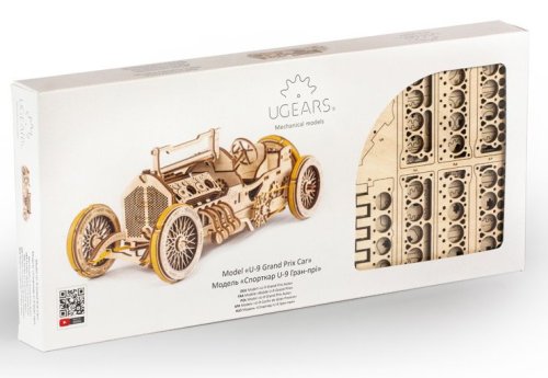 Staňte se průkopníky na úsvitu automobilového sportu. Stavebnice Grand Prix závodního vozu vyrobená z překližky. V případě vystavení může posloužit drobným úložným prostorem za sedačkou řidiče. Mechanika je do detailu propracovaná, a vy tak můžete pozorovat pohyb ventilátoru chlazení i pístů a ventilů motoru V8. Vůz je řiditelný a díky natahovacímu mechanismu je schopen jízdy. Má funkční převodovku pro volnoběh a zpátečku. Jízdní dynamice slouží odpružená přední náprava a pogumování kol také zajišťuje spolehlivý kontakt s povrchem jízdní dráhy. Uspořádejte závody s dalšími modely UGEARS! Vybaveno detailním návodem k sestavení. Hlavní vlastnosti: 348 precizně vyřezaných dílkůvysoká obtížnost sestaveníúložný prostorodpružená přední náprava, pogumování kolvýsledný model je řiditelný a schopný samostatné jízdy včetně zpátečky navrženo a vyrobeno na Ukrajině