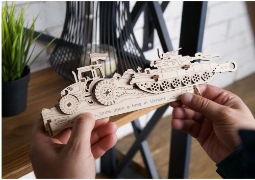Dřevo a pohyb - jak to jde dohromady? Jednoduše! Mechanický pohyb a tradiční materiál spojují 3D modely UGEARS. Poznejte tajemství převodů, gumičkových motorů, koleček a dalších mechanických součástek! Zábavné skládání bez nutnosti lepení, propracované detaily, hladký provoz a kvalitní zpracování - plně funkční pohyblivé 3D puzzle UGEARS ohromí i toho, kdo neměl fyziku ve škole právě v oblibě. Do detailu propracované dřevěné 3D skládačky ukrajinské značky UGEARS jsou vhodné nejen pro rozvoj motoriky a představivosti, ale jsou i neskutečně zábavné. Díky vysoké kvalitě výroby jsou při správné údržbě modely po sestavení plně funkční a pohyblivé a umožňují tak lépe poznat tajemství mechaniky. Rozměry složeného modelu: 24,8 x 9,2 x 1,8 cm 3D puzzle UGEARS jsou opatřeny podrobným obrázkovým návodem. UPOZORNĚNÍ: Pro správné fungování a bezproblémový provoz je třeba součástky, u kterých je to uvedeno v návodu (zejména osy), promazat voskem z obyčejné svíčky, aby byla rotace prováděna s minimálním třením Rozměr složeného puzzle cca 24,8 x 9,2 x 1,8 cm