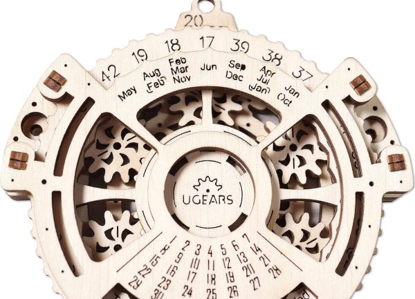 Překvapte svou rodinu, přátele a kolegy s originálním mechanickým kalendářem, který si postavíte vlastníma rukama. Ugears kalendář je zajímavý mechanický strojek, který zobrazuje data od roku 2023-2050. Stačí nastavit rok a měsíc, který potřebujete a nikdy se neztratíte v čase. Dřevo a pohyb - jak to jde dohromady? Jednoduše! Mechanický pohyb a tradiční materiál spojují 3D modely UGEARS. Poznejte tajemství převodů, gumičkových motorů, koleček a dalších mechanických součástek! Zábavné skládání bez nutnosti lepení, propracované detaily, hladký provoz a kvalitní zpracování - plně funkční pohyblivé 3D puzzle UGEARS ohromí i toho, kdo neměl fyziku ve škole právě v oblibě. Do detailu propracované dřevěné 3D skládačky ukrajinské značky UGEARS jsou vhodné nejen pro rozvoj motoriky a představivosti, ale jsou i neskutečně zábavné. Díky vysoké kvalitě výroby jsou při správné údržbě modely po sestavení plně funkční a pohyblivé a umožňují tak lépe poznat tajemství mechaniky. Rozměry složeného modelu: 9.5 x 9.9 x 1.8 cm 3D puzzle UGEARS jsou opatřeny podrobným obrázkovým návodem. UPOZORNĚNÍ: Pro správné fungování a bezproblémový provoz je třeba součástky, u kterých je to uvedeno v návodu (zejména osy), promazat voskem z obyčejné svíčky, aby byla rotace prováděna s minimálním třením. Rozměr složeného puzzle cca 9.5 x 9.9 x 1.8 cm