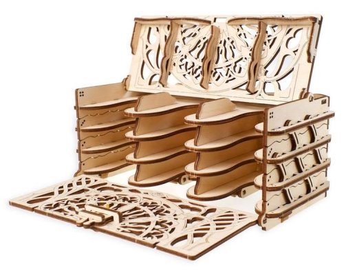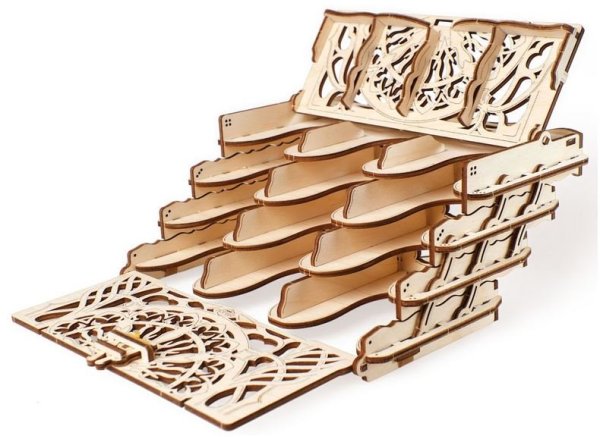 Dřevo a pohyb - jak to jde dohromady? Jednoduše! Mechanický pohyb a tradiční materiál spojují 3D modely UGEARS. Poznejte tajemství převodů, gumičkových motorů, koleček a dalších mechanických součástek! Zábavné skládání bez nutnosti lepení, propracované detaily, hladký provoz a kvalitní zpracování - plně funkční pohyblivé 3D puzzle UGEARS ohromí i toho, kdo neměl fyziku ve škole právě v oblibě. Do detailu propracované dřevěné 3D skládačky ukrajinské značky UGEARS jsou vhodné nejen pro rozvoj motoriky a představivosti, ale jsou i neskutečně zábavné. Díky vysoké kvalitě výroby jsou při správné údržbě modely po sestavení plně funkční a pohyblivé a umožňují tak lépe poznat tajemství mechaniky. Originální stojánek k uložení až 16 balíčků karet s unikátním otevíráním. 3D puzzle UGEARS jsou opatřeny podrobným obrázkovým návodem. UPOZORNĚNÍ: Pro správné fungování a bezproblémový provoz je třeba součástky, u kterých je to uvedeno v návodu (zejména osy), promazat voskem z obyčejné svíčky, aby byla rotace prováděna s minimálním třením. Vhodné pro stavitele ve věku od 14 let. POZNÁMKA: Karty nejsou součástí balení. Rozměr složeného puzzle cca 24,5 x 23,6 x 11,2 cm