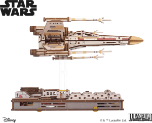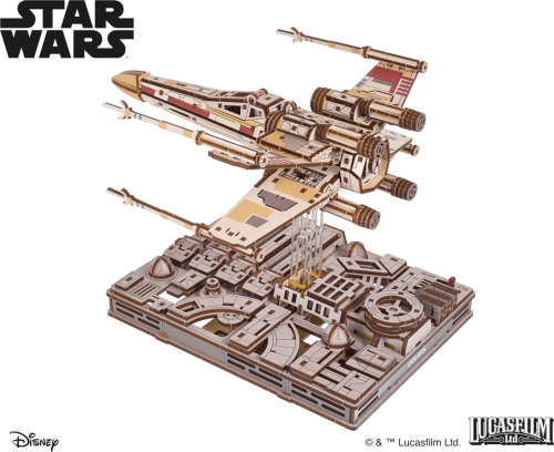 Postavte si legendární stíhačku X-Wing, ve které létal Luke Skywalker v době svého jedi výcviku, i po něm. Stíhačka má křídla S-foil, která se otevírají do útočné polohy, otevírací kokpit, poklop s tlačítkem R2-D2, věrného droida Skywalkera. Skládačka má mechanický podstavec ve stylu exteriéru Hvězdy smrti s akrylovou magnetickou nohou.Zkompletujte stíhačku X-Wing a přidejte se k útoku Červené letky na Hvězdu smrti! Budete poslední linií obrany před Galaktickým impériem a jeho superzbraní. S touto skládačkou se budete cítit jako praví členové Povstalecké aliance. Použijte Sílu, vystřelte a zachraňte galaxii před ničitelem planet.Model stojí na podstavci, který připomíná exteriér Hvězdy smrti, v něm je mechanismus, který stíhačkou houpe. Pohyby připomínají letové manévry X-Wingu, přesně jako ve Star Wars filmech. Model stíhačky lze od podstavce oddělit pomocí magnetu. Fanoušky hvězdných válek jistě nadchnou realistické funkce – otevírací kokpit, oddělitelný přistávací podvozek, poklop na trupu, který se otevírá tlačítkem ve stylu R2-D2. Hlavní mechanickou funkcí jsou však křídla S-foil, které se otevírají do útočné polohy. Napájeno třemi AA bateriemi nebo pomocí USB-C, toto však není součástí balení.Luke Skywalker X-Wing stíhačka je kompatibilní se stíhačkou TIE z Ugears oficiální kolekce Star Wars – podstavce lze spojit pomocí konektorů. Spolu vytvoří větší plochu Hvězdy smrti a napínavou bojovou scénu přímo z filmu. Hlavní vlastnosti: Star Wars model s podstavcem s motorem napájeným bateriemi nebo kabelem USB-C (není součástí balení)magnetická akrylová noha podstavce vytváří efekt letustíhačka manévruje ze strany na stranupovrch podstavce jako exteriér Hvězdy smrtiS-foil křídla se otevírají do útočné polohyotevírací kokpitotevírací poklop na trupu tlačítkem R2-D2detailní zpracovánímontáž bez lepidla a nástrojůobsahuje 455 dílkůstřední obtížnostkompatibilní se stíhačkou TIE