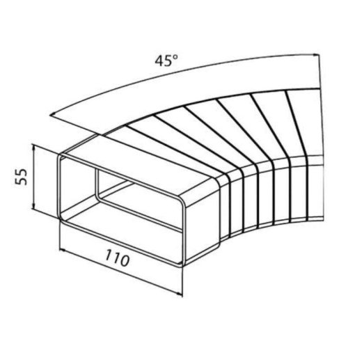 je vyroben z kvalitních plastů PVC a ASA, materiál PVC je odolný až do teploty 80°C je vhodný pro napojení plochého kanálu pod různými úhly dle potřeby