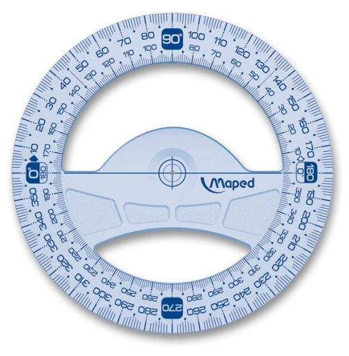 Úhloměr Maped Geometric 360°, průměr 12 cm. Vysoce kvalitní značení, stupnice jsou natištěny za použití UV inkoustu a jsou maximálně odolné.