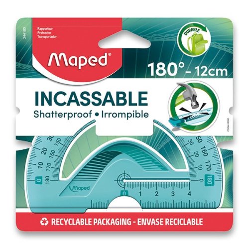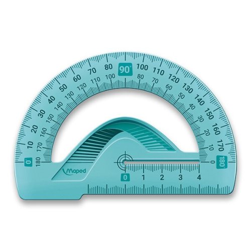 Ohebný a nezlomitelný úhloměr 180° se základnou 12 cm. Vysoce kvalitní značení, stupnice jsou natištěny za použití UV inkoustu a jsou maximálně odolné proti rozbití či zlomení.