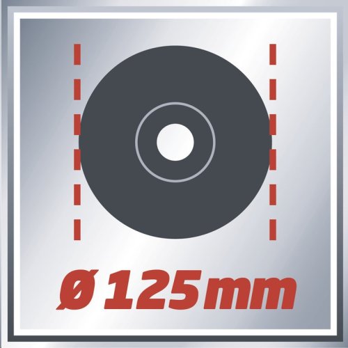 Kotouč o maximálním průměru 125 mm chrání bezpečnostní ochranný kovový kryt a snadno jej vyměníte pomocí zámku vřetena (klíč je schovaný v rukojeti). Plochá hliníková hlava převodovky zamezuje rušivým vibracím při práci.