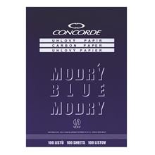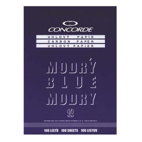 Klasický uhlový papír CONCORDE v modré barvě Určený pro kopírování v běžných psacích strojích i pro ruční psaní Formát: A4 Balení: 100 listů Celková gramáž: mezi 29 - 30 g/m2 (z toho hedvábný papír: …