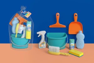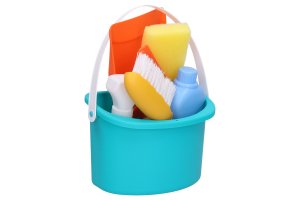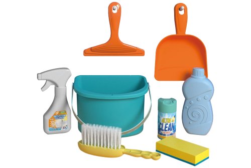 Úklidový set 8 ks. Obsah balení - kyblík, lopatka, stěrka, čisticí prostředky, smetáček.