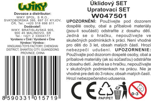 Úklidový set. Součástí kbelík, stěrka, 2 houby, 2 čistící prostředky.