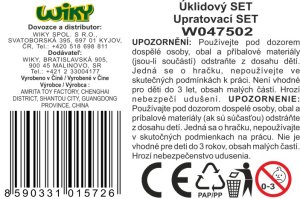 Úklidový set. Součástí kbelík, mop, smetáček, houba, čistící prostředek.