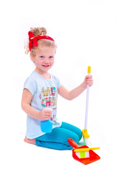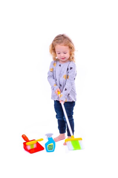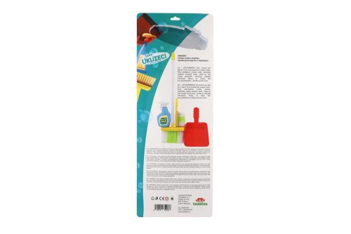 Sada pomůcek na úklid pro malé hospodyňky. Uklízecí sada je vyrobena z kvalitního plastu. Sada obsahuje velký smeták, čistič, smetáček a lopatku. Domácí práce se stanou velkou zábavou. Rozměry balení 21 x 57 x 5 cm. Vhodné pro děti od 3 let.