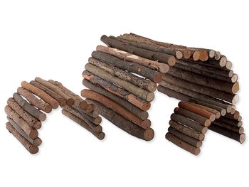 Dílky dřeva jsou spojeny dráty a tím lze snadno vytvarovat požadovaný tvar domku či úkrytu.