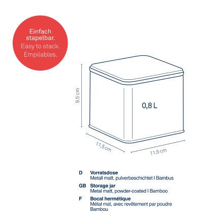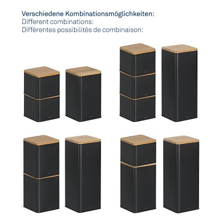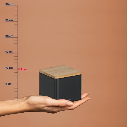 Kovová dóza s bambusovým víkem, stohovatelná matná černá 11,3 cm11,3cm9,7cm
