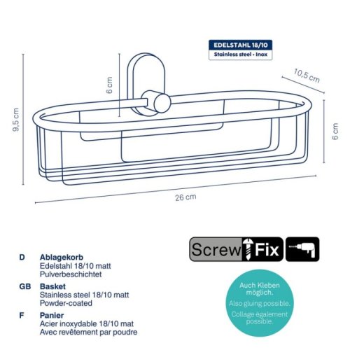 Nerezová ocel 18/10 práškově lakovaná matná 26x10,5cm 9,5cm v