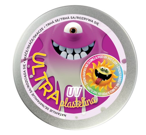 Ultra plastelína UV je specialní druh plastelíny, jenž se dá tvarovat, skáče, trhá se, natahuje se a navíc MĚNÍ BARVU NA SLUNCI A POD UV SVĚTLEM. Výborná antistresová pomůcka.