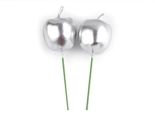 Dekorační jablíčka působí díky svému metalickému zabarvení slavnostně. Jsou připevněná na drátku, který se dá dobře tvarovat. Lehce se zapichují do polystyrenových polotovarů, věnců, dekoračních vazeb, květináčů apod.