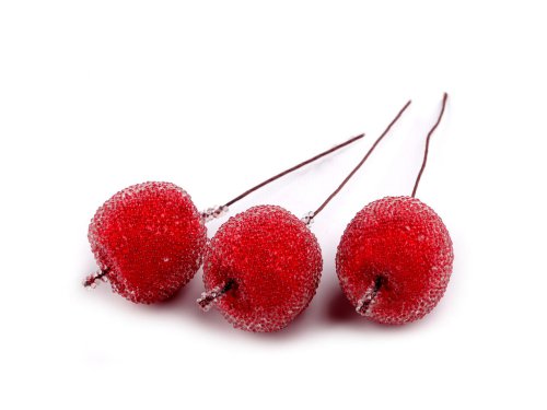 Dekorační jablíčka mají na povrchu drobné transparentní kuličky, které působí jako led. Jablíčka vyniknou v podzimních a zimních aranžmá, na věncích, v truhlících i v květinových vazbách.
