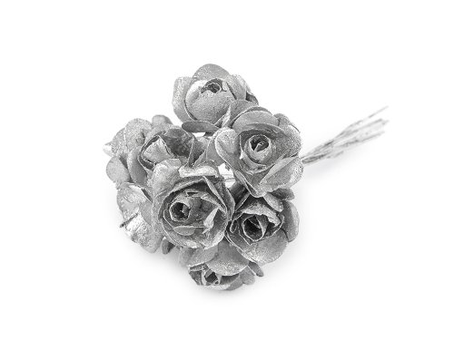 Metalické mini růžičky vyniknou v květinových vazbách, na věncích a v různých aranžmá. Drátek, který je součástí každé růže, usnadňuje jejich připevnění a manipulaci.