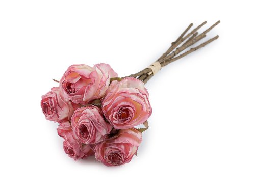 Vintage růže působí romanticky a vnesou do interiéru nádech nostalgie. Vyniknou ve váze, ale i zakomponované na věncích a v květinových vazbách a ikebanách. V jednom svazku je 6 růží převázaných přírodním lýkem. Uvnitř stonku mají drát. Průměr květu je cca 4 cm, jeho délka je také cca 4 cm.