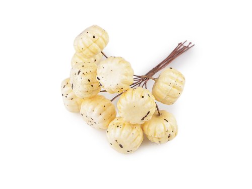 Dekorační mini dýně vyniknou v podzimních a dušičkových vazbách, věncích apod. Drátek, ke kterému jsou připevněné, umožňuje snadnou manipulaci a upevnění do různých aranžmá.