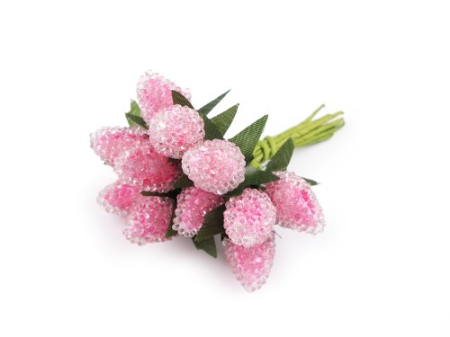Dekorační jahody jsou zpestřené drobnými transparentními kuličkami, které vytvářejí dojem ledu. Díky drátku se dají ohýbat. Využijete je na ozdobení věnců, menších květinových vazeb, aranžmá apod.