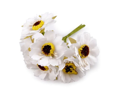 Umělé květy s pestíky jsou připevněné k drátku, který je omotaný floristickou páskou. Můžete je lehce ohýbat a tvarovat. Využijete je k výrobě svatebních voniček, k ozdobení čelenek do vlasů, věnců, květináčů apod.