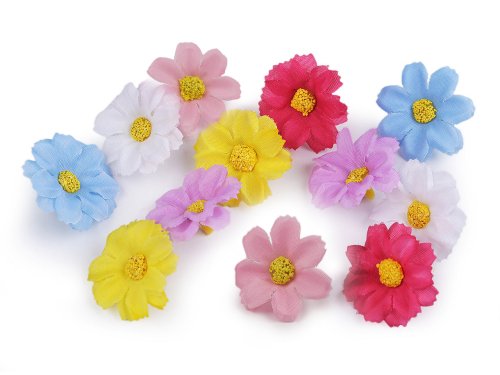 Drobné květy kopretiny využijete k aranžování květinových vazeb, ikeban či věnců. Můžete je také použít k dozdobení věnečků do vlasů, čelenek, fascinátorů nebo sponek. Do stonku lze zasunout drát s průměrem 2 mm.
