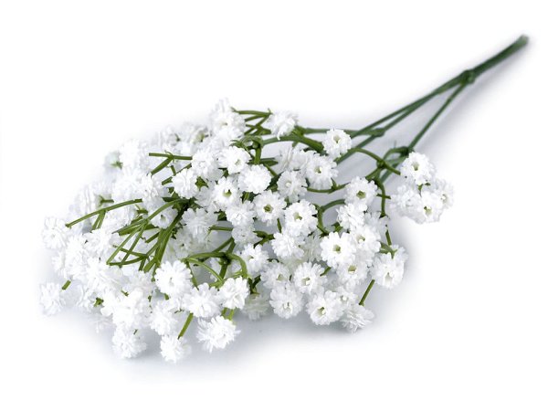 Umělý nevěstin závoj působí jemně a romanticky. V jeho stonku se ukrývá drát, díky kterému můžete květ lehce tvarovat. Použití: Nevěstin závoj je vhodný na různá aranžmá, například do květinových vazeb, věnců, ikeban, košíků, váz apod. Můžete jím také ozdobit věnečky do vlasů.