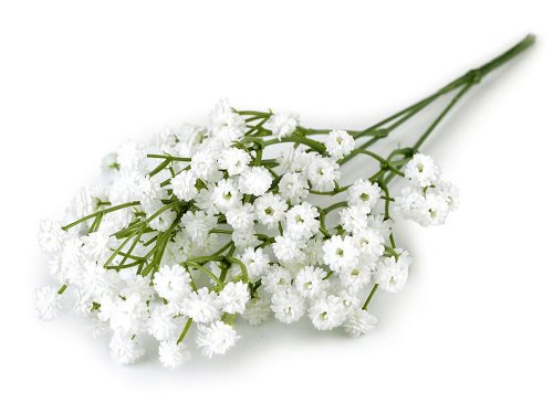Umělý nevěstin závoj působí jemně a romanticky. V jeho stonku se ukrývá drát, díky kterému můžete květ lehce tvarovat. Použití: Nevěstin závoj je vhodný na různá aranžmá, například do květinových vazeb, věnců, ikeban, košíků, váz apod. Můžete jím také ozdobit věnečky do vlasů.