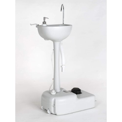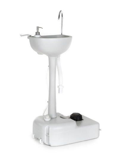 Umyvadlo přenosné. Přenosné stojanové umyvadlo lze využít na chatě, v kempu, v karavanu či na farmářských trzích, stáncích s občerstvením, všude tam, kde jsou kladeny požadavky na hygienu a potřebu zajištění …