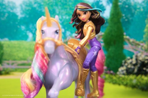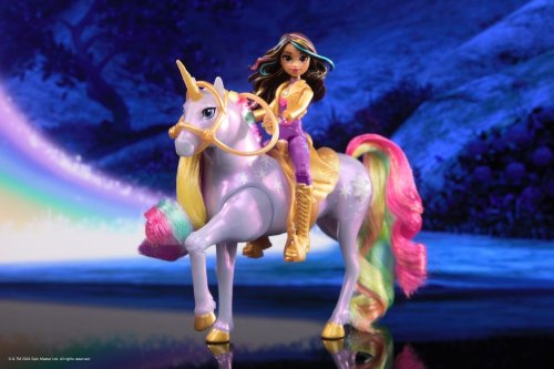 Zažijte kouzlo Jednorožčí akademie díky Sofii a Polárce se světelnou magií! Toto duo inspirované animovaným pořadem od NETFLIXu a bestsellerovou knižní sérií, kde přátelství drží otěže osudu, oslavuje jedinečné pouto mezi jezdcem a jednorožcem. Tato sada podněcuje kouzelnou kreativní hru díky Polárce, která se chlubí věrnými detaily, měkkou duhovou hřívou a ocasem a skutečnými světelnými efekty. Díky 7 kloubům lze Sofii posadit na Polárku a stisknutím tlačítka s hvězdičkou na Polárčině straně lze aktivovat světla a přehrát si své oblíbené scény z pořadu (součástí balení jsou 3 baterie LR44). Když Polárka dupne kopytem, vytvoří pomocí světelné magie duhový vzor, přesně jako v seriálu! Díky odnímatelné uzdě a sedlu zůstane Sofie bezpečně na hřbetu Polárky. Chcete-li objevit všechny způsoby, jak si užít svět Jednorožčí akademie se svými oblíbenými postavami, si prohlédněte další malé panenky, jako jsou Ava, Layla, Isabel a Valentina spolu s jejich jednorožci (sady se prodávají samostatně), rozšiřte svůj kouzelný svět! Určeno pro děti, které mají rády jednorožce a koně, panenky a doplňky, hračky pro panenky, sběratelské předměty, plyšové hračky a další. Hračky s tematikou Jednorožčí akademie jsou perfektním dárkem pro dívky k narozeninám nebo jakékoli jiné příležitosti. Prožijte vlastní zářivé dobrodružství z Jednorožčí akademie díky Sofii a Polárce se světelnou magií!