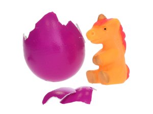 Unicorn jednorožec líhnoucí a rostoucí ve vajíčku 6 cm - mix barev (tmavě fialová, fialová, růžová)