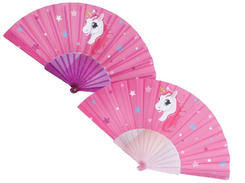 Unicorn vějíř 23 cm - mix barev (světle růžová, tmavě růžová)