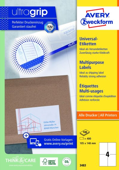 Univerzální etikety Avery, 105 x 148 mm, bílé