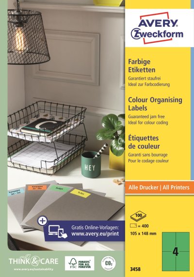Univerzální etikety Avery, 105 x 148 mm, zelené