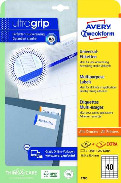 Univerzální etikety Avery, 48,5x25,4 mm, bílé