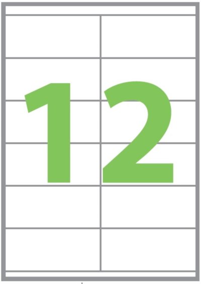 Rozměr: 105 x 48 mm, etiket na archu: 12 ks