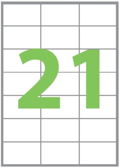 Univerzální samolepicí štítky Vhodné pro laserové tiskárny, inkoustové tiskárny a kopírovací stroje Velikost štítku: 70 x 42,3 mm Počet štítků na listu: 21 Bělost CIE: 150 Technologie QCT-Quatro Clean …