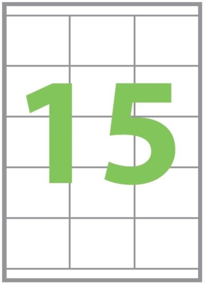 Klasické samolepicí etikety vhodné pro laserové tiskárny, inkoustové tiskárny a kopírky Velikost štítku: 70 x 50,8 mm Počet štítků na list: 15 Gramáž: 70 g/m2 CIE bělost: 150 QCT - Quatro Clean Technology …