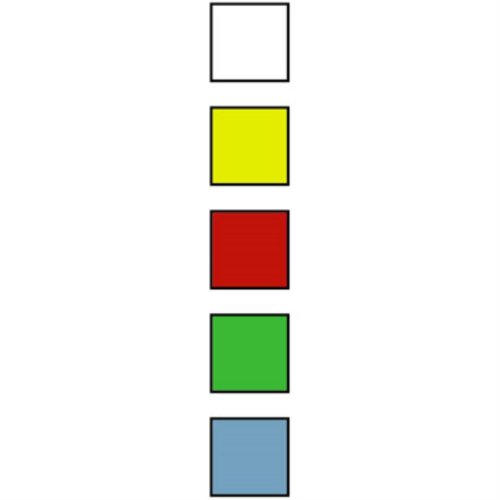 V každém balení je 5 barev po 20 arších (bílá, žlutá, červená, zelená, modrá)