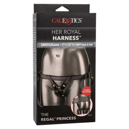 Her Royal Harness je jednoduše nastavitelný a použitelný postroj s dildy o průměru 3,75 cm až 5 cm. Popruhy oblékne žena i muž. Postroj lze upravt kovovými sponami a pásky, podle své postavy. Součástí postroje jsou tři různě velké kovové kroužky do kterých můžete umístit různá dilda.