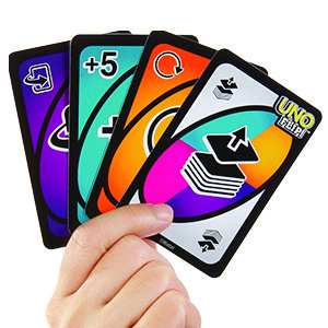 Připravte se na další opakování klasické hry UNO ™: UNO FLIP!™. Je to přiřazovací hra, kterou znáte, obohacená o vzrušující nové zvraty – jako je oboustranný balíček karet, speciální karta FLIP a přísnější tresty – které dávají klasickému hraní konkurenční výhodu. V balíčku je „světlá strana“, která se hraje jako klasické UNO ™, a „temná strana“, kde jsou pokuty velmi tvrdé. Zahrajte kartu FLIP a všechny karty ve vaší ruce, hrací balíček a balíček odhozených karet a se otočí a odhalí zcela novou sadu čísel a barev na opačné straně! Držitel karty FLIP určuje, zda hrajete na světlé straně nebo na temné straně balíčku – a kdy se to přemění zpět. Temná strana balíčku obsahuje nové akční karty, které to opravdu rozpohybují, jako karty Naber si 5 a Přeskoč všechny. Vytvořte strategii, abyste svou konkurencí otřásli, a buďte první, kdo se zbaví svých karet a vyhraje. Když už máte jen jednu kartu, nezapomeňte zakřičet „UNO!“ Milovníci karetních her nyní mohou získat UNO FLIP! ™ v robustní plechovce, která je skvělá pro skladování a cestování. Tato zábavná rodinná karetní hra je ideální pro děti od 7 let. Barvy a dekorace se mohou lišit.