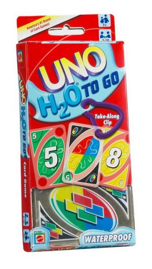 UNO H2O Na cesty – ideální společník na výlety! Vezměte si tuto voděodolnou cestovní verzi hry UNO kamkoliv s sebou! Pevné plastové karty jsou odolné vůči vodě, takže si zábavu můžete užít doma, venku, na pláži nebo v kempu. Praktická karabina udrží všechny karty pohromadě a snadno ji připnete k batohu, plážové tašce nebo kempovací výbavě. UNO H2O Na cesty obsahuje 108 karet a je vhodné pro hráče od 7 let. Připravte se na hru kdykoliv a kdekoliv!
