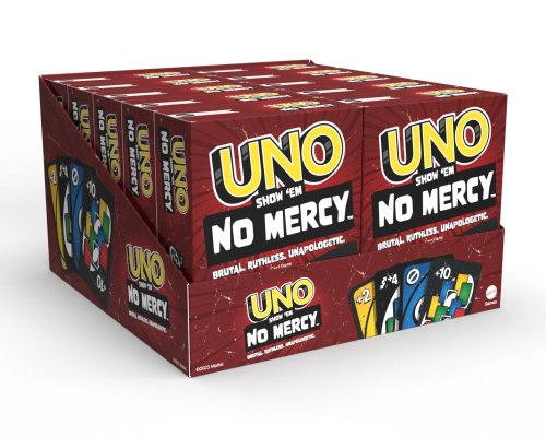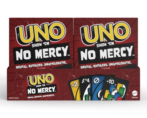 UNO Extension je naše dosud nejbrutálnější hra UNO! Obsahuje spoustu dalších karet s mnohem tvrdšími postihy (kdo si chce vzít 10 karet?) a nová pravidla, díky kterým budou hráči střádat, vyměňovat a tahat více karet než kdykoli předtím! A dokonce je tu i pravidlo milosrdenství (ano, chápeme tu ironii), pokud se věci stanou příliš drsnými. V této nemilosrdné verzi klasické hry můžete vyhrát dvěma způsoby: zbavit se všech karet NEBO vyřadit všechny ostatní hráče ze hry! A pokud se vám podaří dosáhnout chvíle, kdy budete mít v ruce jen jednu kartu, nezapomeňte zakřičet "UNO!".