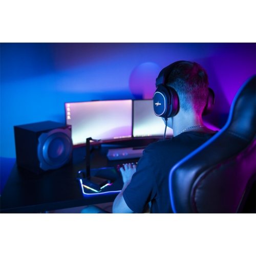 • herní stereo headset s uzavřenou konstrukcí over-ear a s virtuálním prostorovým zvukem 7.1