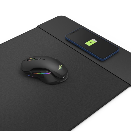 podložka pod myš s integrovanou plochou pro bezdrátové nabíjení telefonu