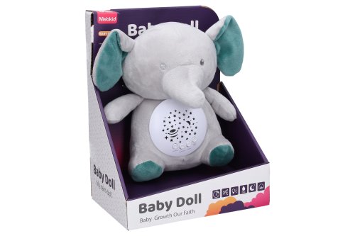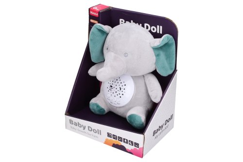 Usínací slon plyšový. Rozměry 26x12x25 cm. Funkce světla - 7 barev, mohou se automaticky měnit. 10 melodií, 4 bílý šum. Možnost nastavení hlasitosti. Automatické vypnutí po 30 minutách. 3xAAA baterie, nejsou součástí.