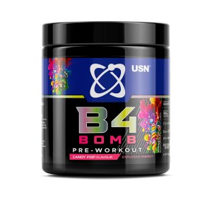 ! Obsahuje kofein, není vhodné pro děti a těhotné ženy. Jedna dávka (15 g) obsahuje 200 mg kofeinu. Produkt není vhodný pro osoby trpící přecitlivělostí na kofein. USN B4-Bomb je předtréninkový nápoj s aminokyselinami, vitamíny, minerály a účinnými extrakty z rostlin. Je vědecky navržen tak, aby zvyšoval Vaši energetickou hladinu a výdrž při tréninku. Obsahuje patentovanou složku TeaCrine® , který podporuje přirozené metabolické procesy v těle, aby dosáhly vyšší energie. Doporučené dávkování: