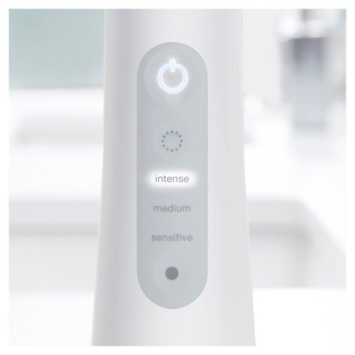 Šetrně čistěte mezizubní prostory s bezšňůrovou ústní sprchou Oral-B AquaCare s technologií Oxyjet pro osvěžující péči o dásně. Elektrická ústní sprcha s technologií Oxyjet, nastavení pulzování pro precizní čištění, lineární nebo rotační proud vody. Postará se o vaše zuby a zároveň odstraní zbytky jídel z mezizubních prostor. Zlepšuje péči o vaše dásně. Režim On-Demand, kterým můžete sami ovlivňovat intenzitu proudu vody. Nádobka na vodu je umístěna přímo v zadní části rukojeti. 6 volitelných čisticích režimů, 3 intenzity čištění – jemná, středně intenzivní a intenzivní.