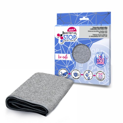 Utěrka BACTERIA STOP z mikrovlákna, obsahující ionty stříbra, které zabraňují růstu bakterií na povrchu látky. Všestranné použití umožňuje uklidit celý domácí prostor. Zaručuje čistotu a svěžest bez zanechání šmouh nebo škrábanců. Čisticí hadřík lze používat namokro i za sucha bez použití čisticích prostředků. Lze prát do 40 stupňů C, antibakteriální vlastnosti přetrvávají až do 50 praní.