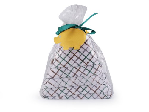 Kvalitní utěrky ve vánočním balení jsou vyrobené z egyptské bavlny, která je považována za nejkvalitnější bavlnu na světě. Utěrky jsou extrémně savé, stálobarevné, hebké, bez žmolků a mají dlouhou životnost. Za poutko je můžete pohodlně zavěsit. Jsou zabalené v transparentním sáčku do tvaru vánočního stromečku, jsou ozdobené mašlí s vánoční visačkou. Díky vánočnímu balení mohou být krásným a praktickým dárkem pod stromeček. V jednom balení jsou 3 kusy utěrek.